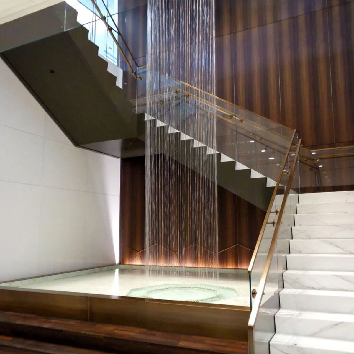 - Semi-customizable Waterwalls are available in several different sizes with various options for frame color, water panel material and accessories. They can be installed next to each other to create the appearance of a long horizontal Waterwall.