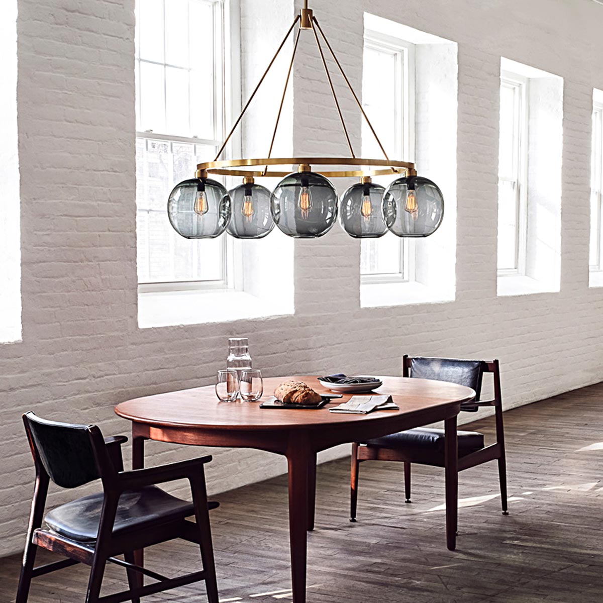- Their minimalist style includes simple shapes such as globes, cylinders, marquise, and lantern-style