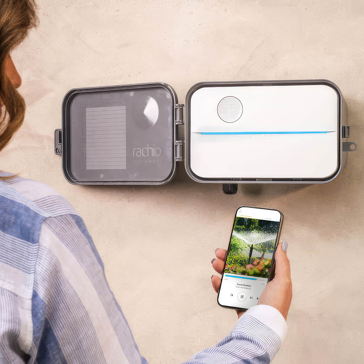 Rachio produces advanced irrigation controls which monitor weather, seasons, and temperature to automatically adjust watering times and duration for maximum water savings and ecosystem health.
